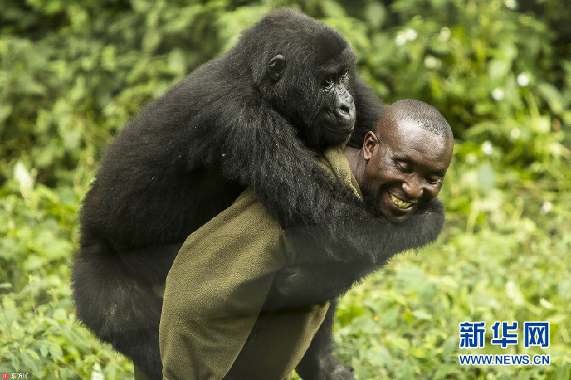 刚果大猩猩摄把饲养员揽进怀里熊抱,摄影师James Gifford用镜头记录下了这暖心的一幕。图片来源:东方IC
