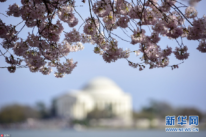 美国华盛顿迎来浪漫樱花季 小萌娃赏樱一脸陶醉