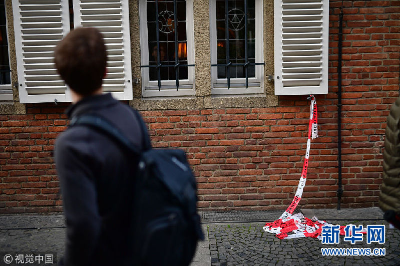当地时间2018年4月8日,德国明斯特,民众在案发现场献花悼念遇难者。7日,一辆汽车在当地撞入人群,造成2人死亡数十人受伤。警方发言人称,司机已开枪自尽。(图片来源:视觉中国)