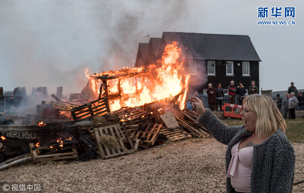 4月8日,英国黑斯廷斯,支持“脱欧”的英国民众驾船抗议脱欧过渡协议。(图片来源:视觉中国)