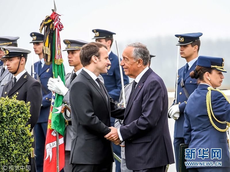 4月9日,法国里什堡,法国总统马克龙和葡萄牙总统马塞洛·雷贝洛·德索萨在一战葡萄牙公墓出席一战纪念仪式,纪念利斯战役百年。(图片来源:视觉中国)