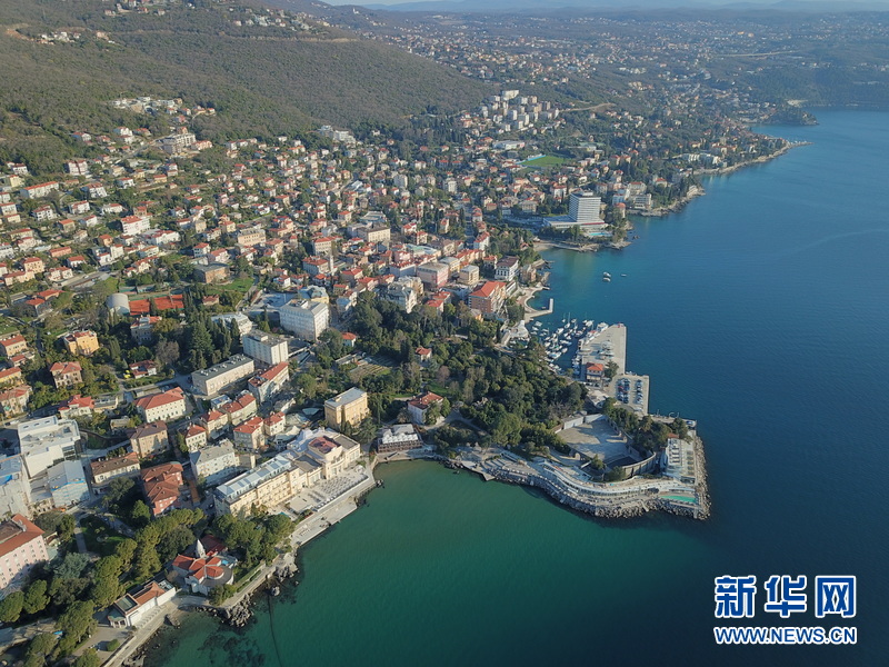 图为4月7日拍摄的克罗地亚海滨城市奥帕蒂亚海岸线风光。新华网记者高磊 摄