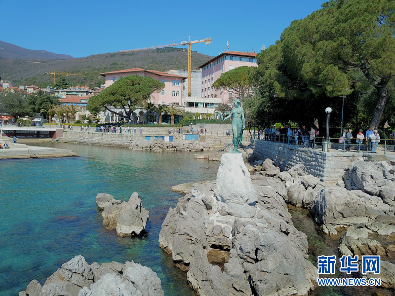 图为4月7日拍摄的克罗地亚海滨城市奥帕蒂亚海岸线风光。新华网记者高磊 摄