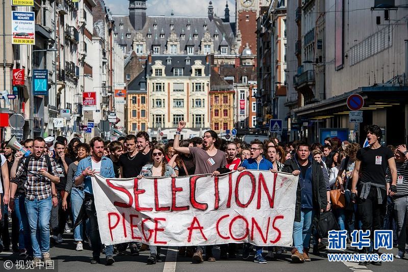 4月10日,法国巴黎,学生抗议总统马克龙的大学改革。(图片来源:视觉中国)