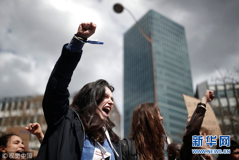 4月10日,法国巴黎,学生抗议总统马克龙的大学改革。(图片来源:视觉中国)