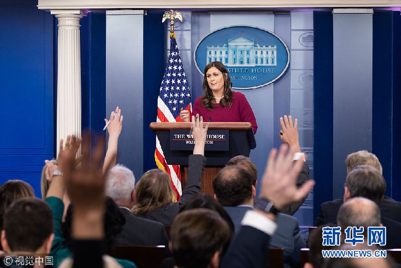 当地时间2018年4月10日,美国华盛顿,白宫发言人桑德斯宣布美国总统特朗普将不会按原计划前往秘鲁,参加第八届美洲国家峰会,并派副总统代为前往。原因是特朗普需要留在国内,负责对叙利亚问题作出回应以及观察国际动向。(图片来源:视觉中国)