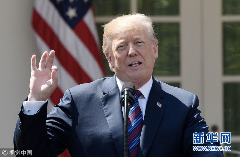 4月12日,美国华盛顿,美国总统特朗普在白宫玫瑰园会见美国工人,发表减税演讲。(图片来源:视觉中国)