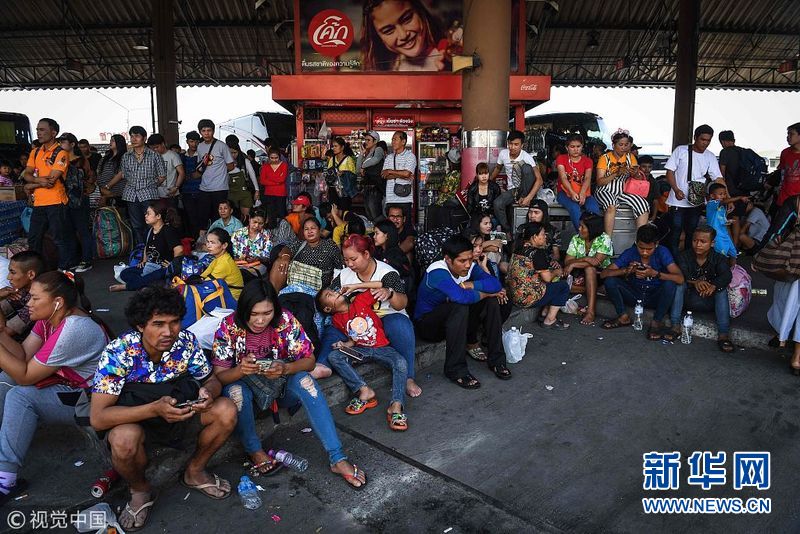 泰国民众返乡庆祝宋干节 车站人满为患乘客席地而坐