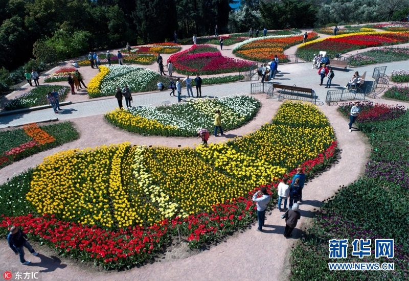 克里米亚公园8万株郁金香盛放 春色满园惹人醉
