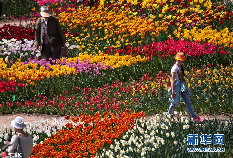 当地时间2018年4月13日,俄罗斯克里米亚共和国雅尔塔,当地的植物园举办郁金香花展,展出250种、共8万株郁金香。