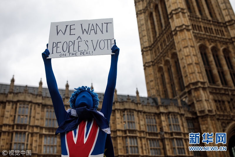 人士在议会大厦外抗议。(图片来源:视觉中国)
