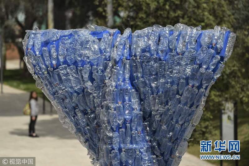 4月16日,意大利罗马,一个10米长由250公斤塑料垃圾打造的鲸鱼艺术装置在罗马音乐厅前展出,旨在提高海洋塑料污染问题的意识。(图片来源:视觉中国)