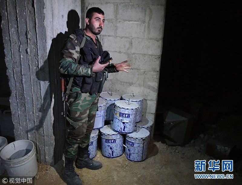 4月18日,叙利亚杜马,在杜马镇发现的“化武实验室”。据报道,俄罗斯士兵上周二在叙利亚杜马镇一栋居民楼的地下室里发现了一个储存生产化学武器原料的仓库,此外俄军还称,他们在该仓库中还发现了一个汽缸,类似于此前武装分子用来传播虚假新闻时称可用来“生产氯气”的气罐。(图片来源:视觉中国)