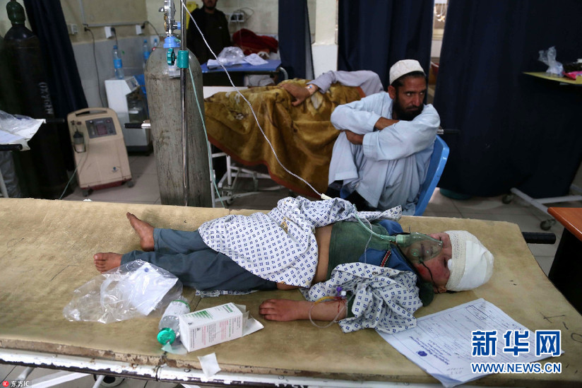 当地时间2018年4月20日,阿富汗贾拉拉巴德,受伤的儿童在医院接受治疗。4月19日,当地发生爆炸事故,致至少5名平民死亡,14人受伤。(图片来源:东方IC)