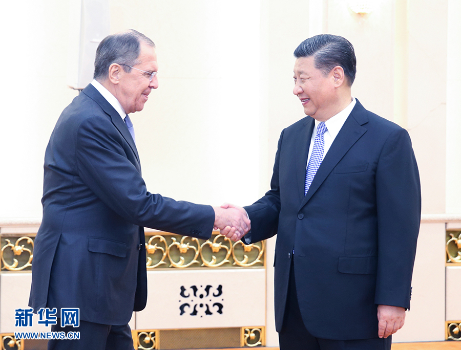 4月23日,国家主席习近平在北京人民大会堂会见俄罗斯外长拉夫罗夫。 新华社记者 姚大伟 摄