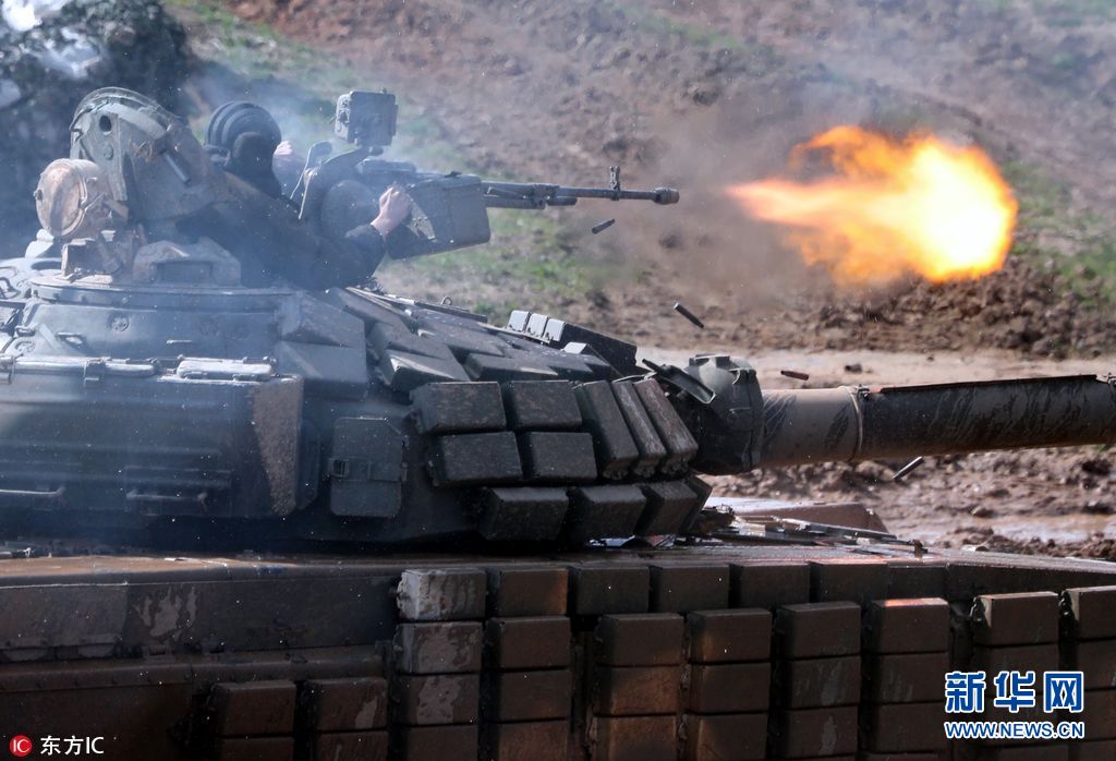 4月21日,白罗斯Goroshki,白罗斯举行2018坦克两项竞赛。(图片来源:东方IC)