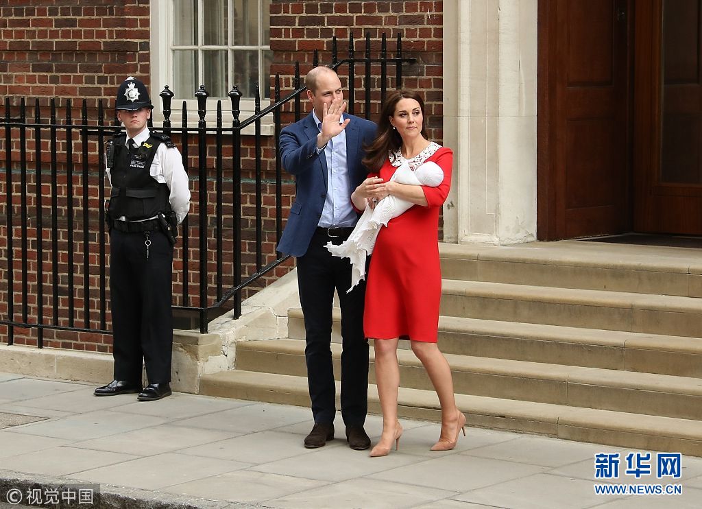 4月23日,英国伦敦,凯特王妃三胎产子出院亮相。(图片来源:视觉中国)