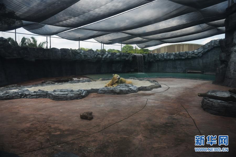 4月25日,由于健康状况恶化,世界上首只在热带出生的北极熊伊努卡在新加坡动物园被实施安乐死。这是4月13日,北极熊伊努卡在新加坡动物园休息。新华社发(邓智炜摄)