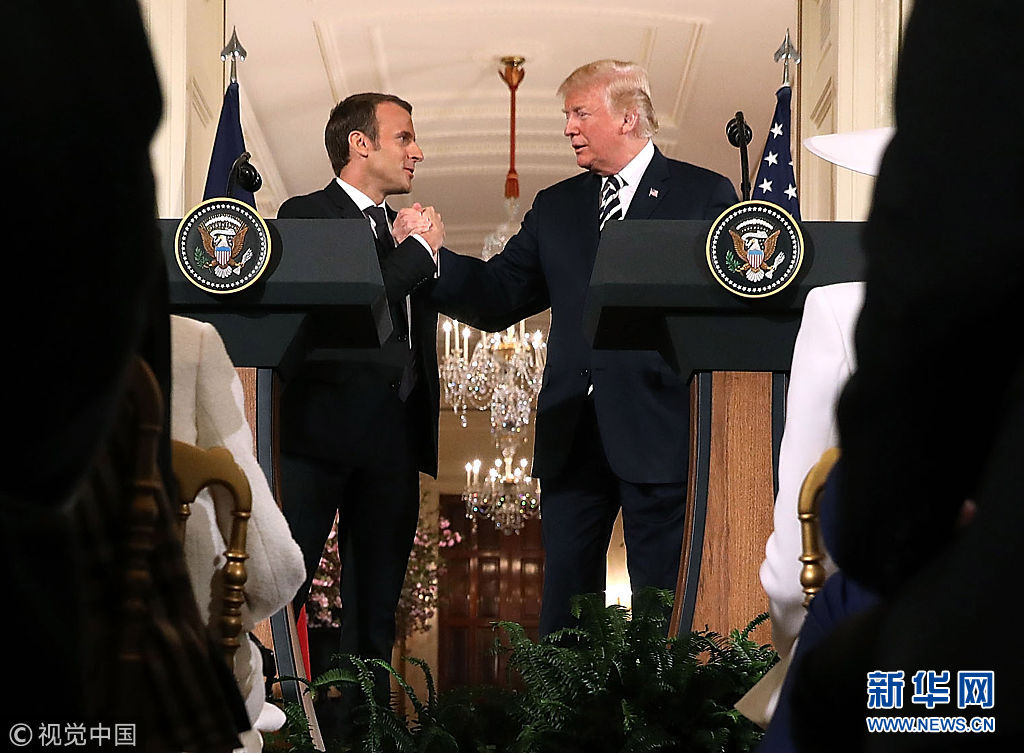 4月24日,美国华盛顿,法国总统马克龙与美国总统特朗普召开联合新闻发布会。(图片来源:视觉中国)
