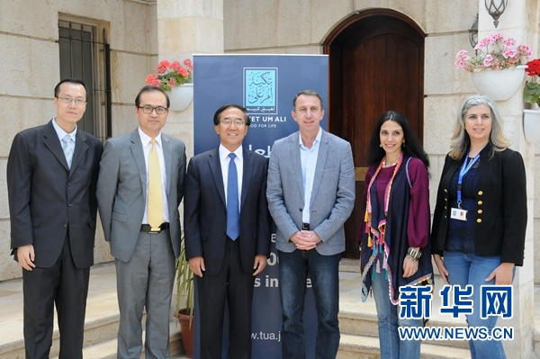 中国驻约旦大使馆官员和“阿里之母”慈善组织工作人员合影留念。新华网记者林晓蔚 摄