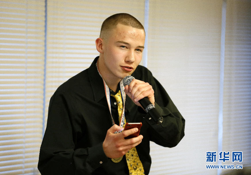 4月21日,在美国伊利诺伊州的胡林学院,来自威斯康辛大学麦迪逊分校的达比进行汉语演讲。 新华网记者汪平 摄