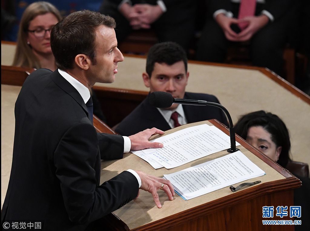 法总统马克龙在美国国会山发表演讲