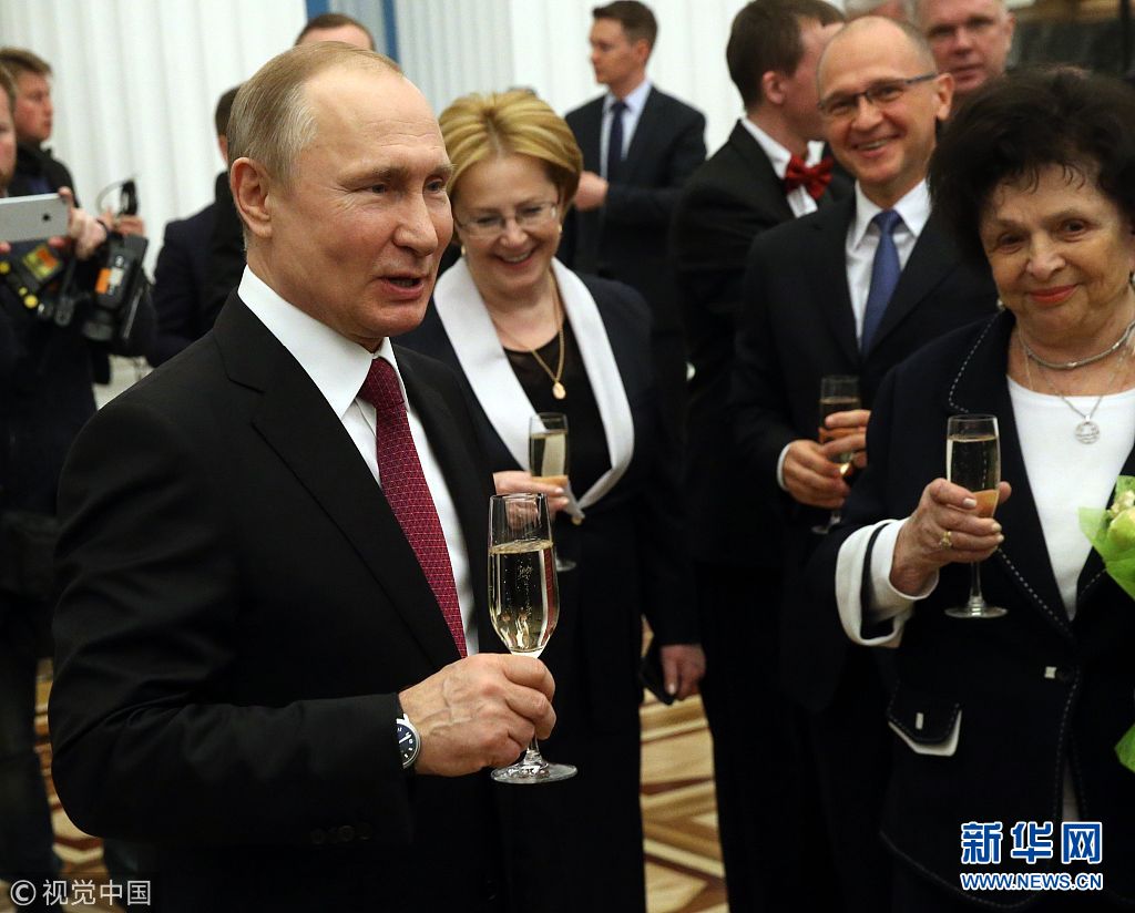 4月25日,俄罗斯莫斯科,俄罗斯总统普京出席颁奖仪式。普京当天在克里姆林宫向5名劳动工作者颁发“劳动英雄”奖章,以表彰他们为国家和人民建立的特殊劳动功勋。(图片来源:视觉中国)