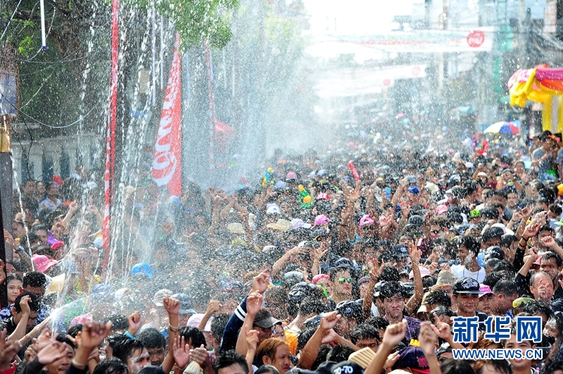 4月22日,泰国沙没巴干府帕巴登县,当地民众参加花车游行庆祝活动。22日是当地泼水节庆祝的最后一天。新华网发 拉亨摄