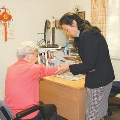 澳大利亚华裔医生刘英在为患者检查身体。记者 李锋 摄