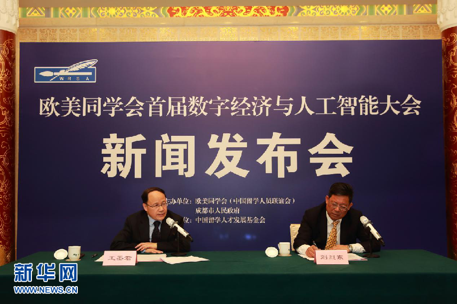新华网北京4月28日电(郝斐然 王一诺)欧美同学会首届“数字经济与人工智能”大会新闻发布会28日在京举行。欧美同学会党组书记、秘书长王丕君和成都市副市长刘烈东介绍大会有关情况。