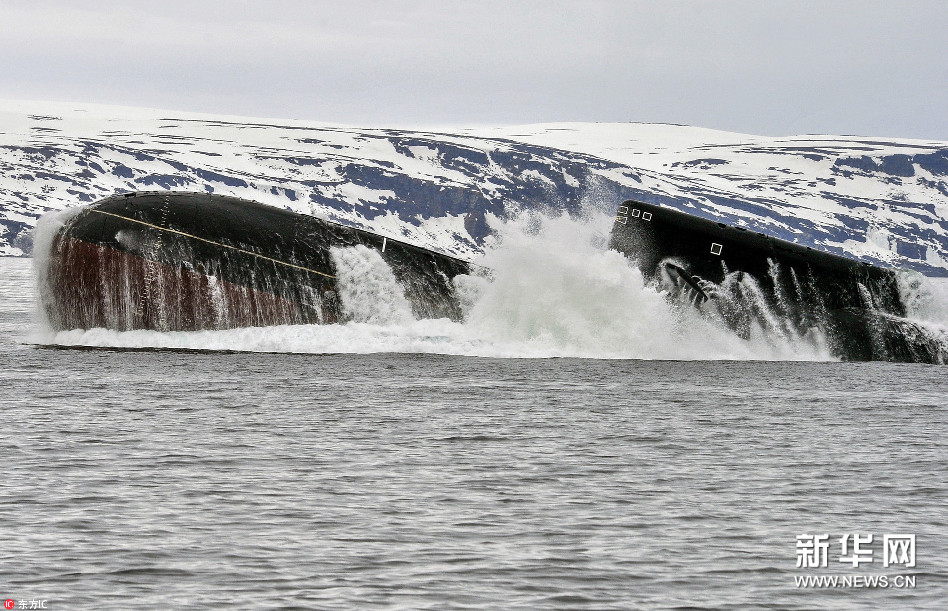 壮观!俄核潜艇在北冰洋巴伦支海训练