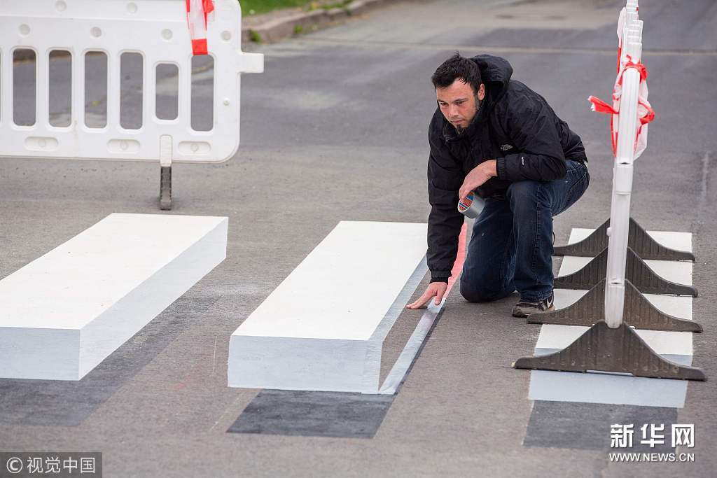 当地时间4月30日,德国施马尔卡尔登镇现3D人行道,该设计旨在为提高道路安全。(图片来源:视觉中国)