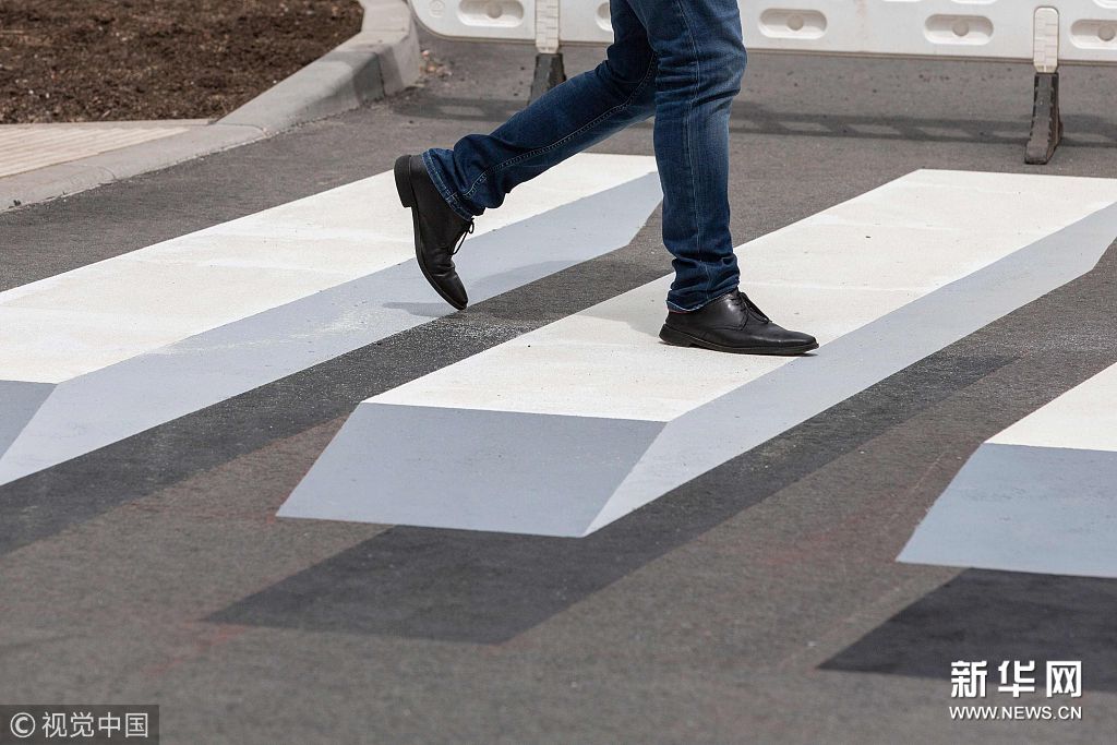 当地时间4月30日,德国施马尔卡尔登镇现3D人行道,该设计旨在为提高道路安全。(图片来源:视觉中国)