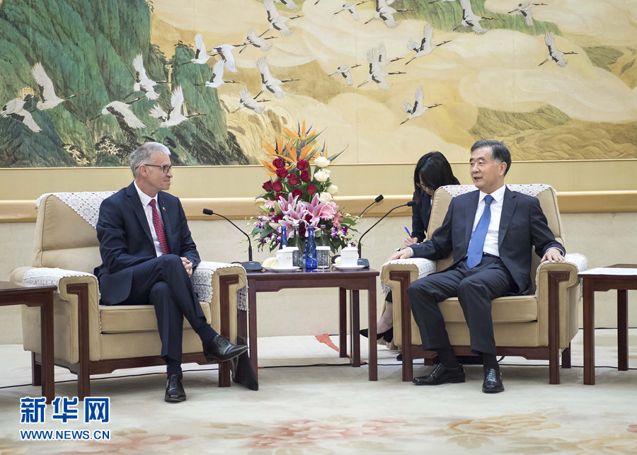 5月2日,全国政协主席汪洋在北京会见法国经济社会环境理事会主席贝尔纳斯科尼。 新华社记者 李涛 摄