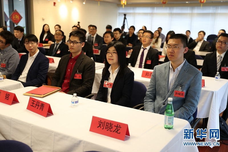 4月27日,参加中国驻芝加哥总领馆举行的2017年度“国家优秀自费留学生奖学金”颁奖典礼的获奖学生。新华网记者汪平 摄
