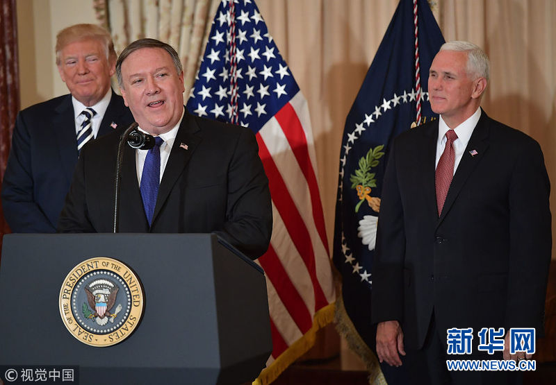 5月2日,美国华盛顿,迈克·蓬佩奥在总统特朗普的见证下正式宣誓就职美国国务卿。(图片来源:视觉中国)