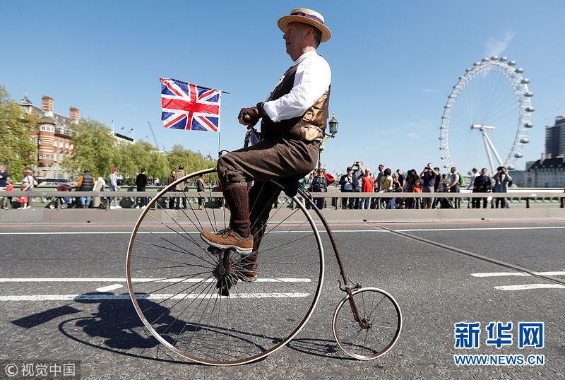 5月5日,英国伦敦,当地举行复古骑行活动。 (图片来源:视觉中国)