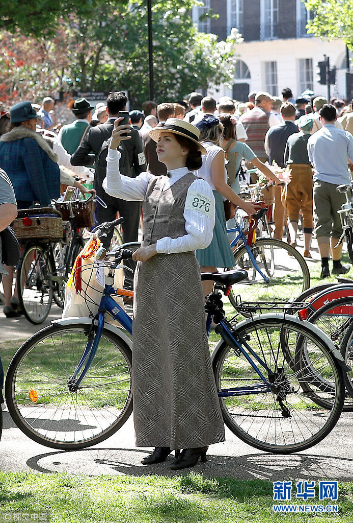5月5日,英国伦敦,当地举行复古骑行活动。 (图片来源:视觉中国)