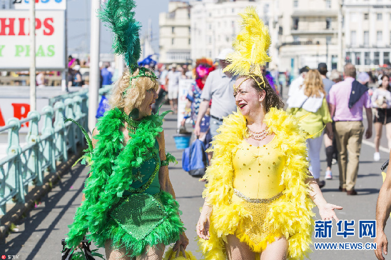英国迎最热五月银行假 民众海滩“花式”日光浴