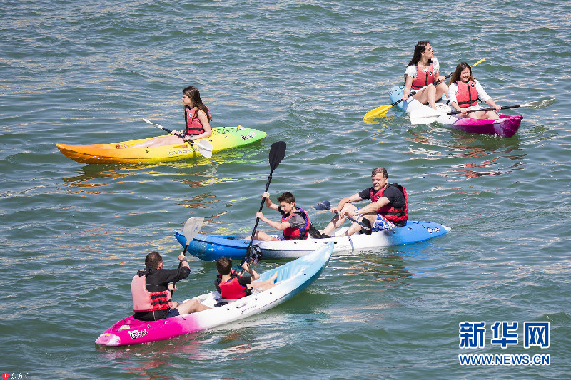 英国迎最热五月银行假 民众海滩“花式”日光浴