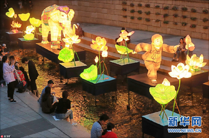 佛诞日将至 百盏花灯点亮韩国清溪川