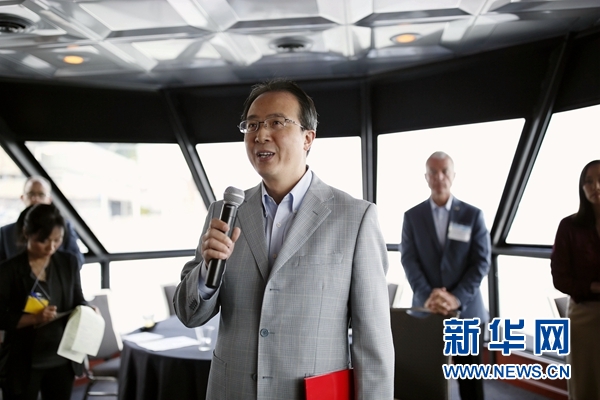 6日,在美国底特律,中国驻芝加哥总领事洪磊在在“中国周”招待会上致辞。新华网记者 汪平摄