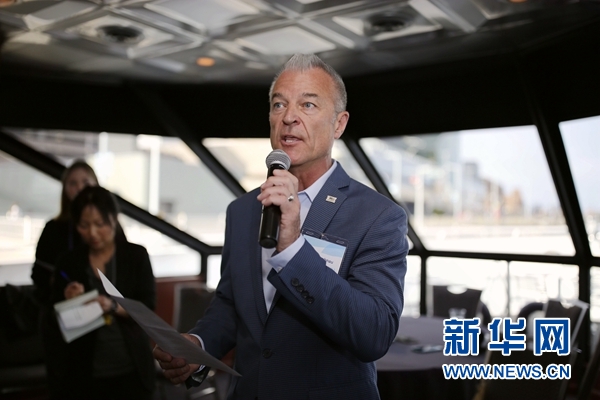 6日,在美国底特律,底特律市城市会展与旅游局副局长戴夫·比奇诺在“中国周”招待会上致辞。新华网记者 汪平摄