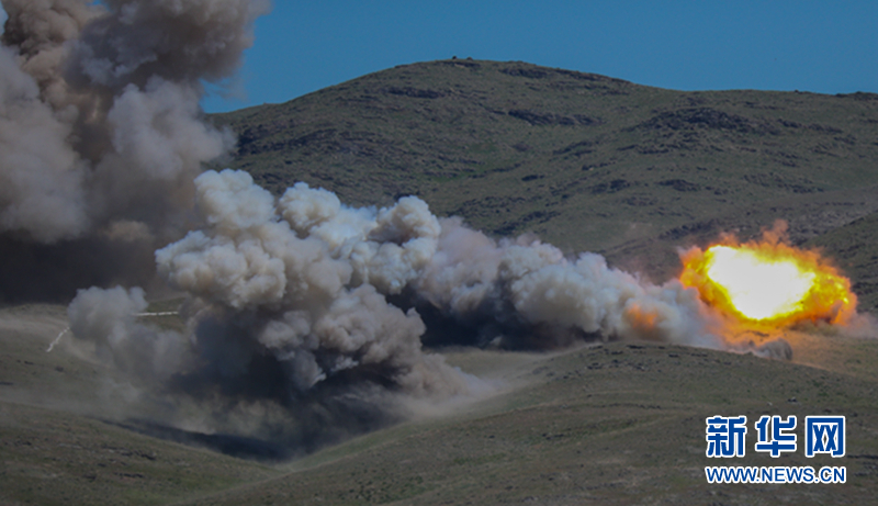 5月7日,参加阅兵的各军兵种部队举行贴近实战的军事演习。新华网发 米赫耶夫摄