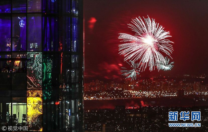 俄罗斯多地燃放绚烂烟火 庆祝卫国战争胜利73周年