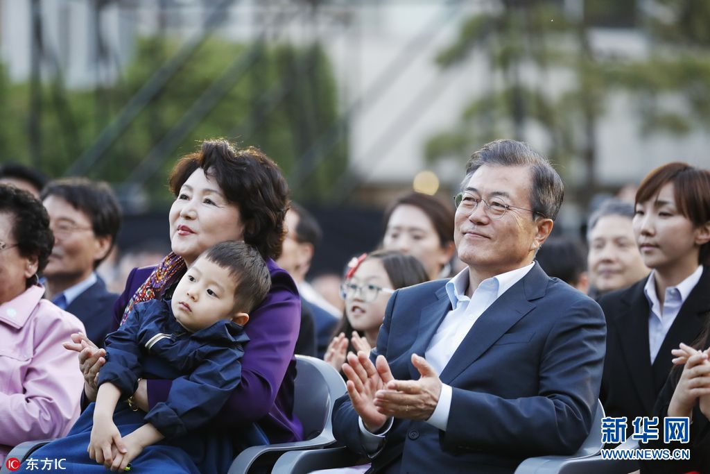 5月10日,韩国首尔,韩国总统文在寅夫妇在青瓦台举办小型音乐会,庆祝就任一周年,并邀请了青瓦台附近的居民和学生出席。(图片来源:东方IC)