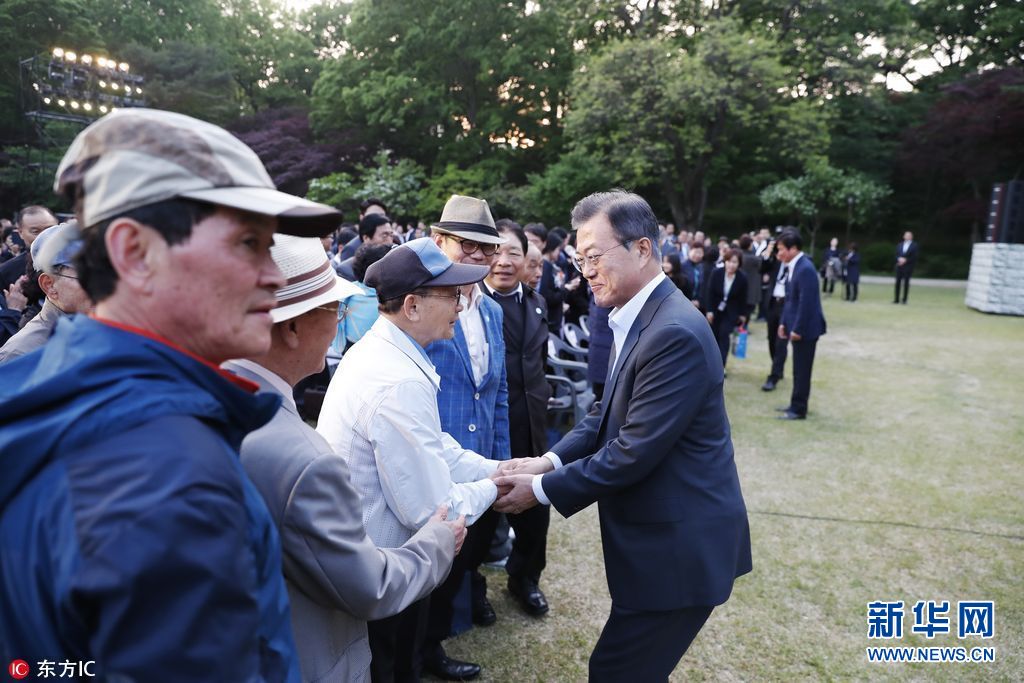 5月10日,韩国首尔,韩国总统文在寅夫妇在青瓦台举办小型音乐会,庆祝就任一周年,并邀请了青瓦台附近的居民和学生出席。(图片来源:东方IC)