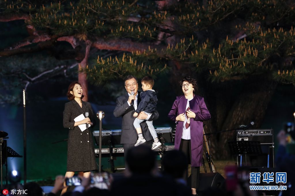 5月10日,韩国首尔,韩国总统文在寅夫妇在青瓦台举办小型音乐会,庆祝就任一周年,并邀请了青瓦台附近的居民和学生出席。(图片来源:东方IC)
