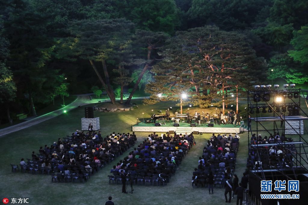 5月10日,韩国首尔,韩国总统文在寅夫妇在青瓦台举办小型音乐会,庆祝就任一周年,并邀请了青瓦台附近的居民和学生出席。(图片来源:东方IC)