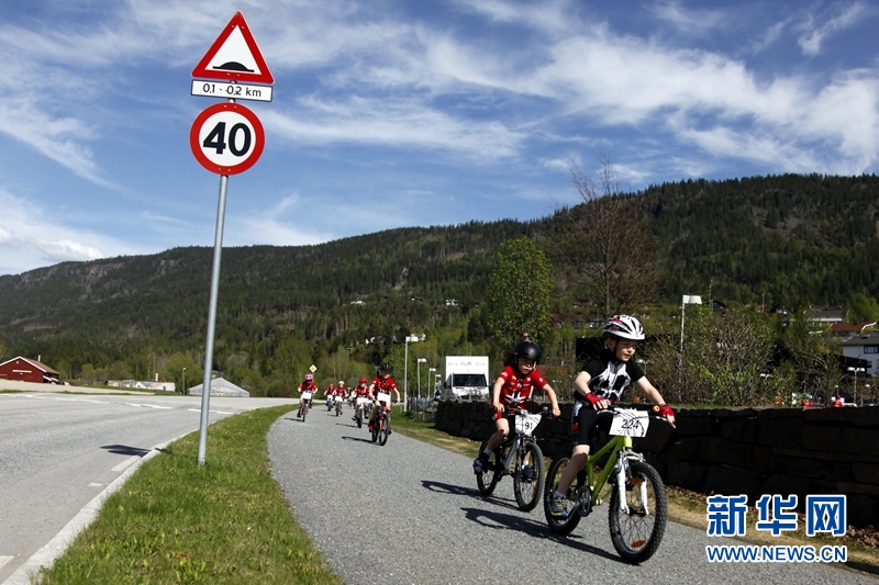 5月10日,2018年环挪威儿童自行车赛在挪威东部小镇松德沃伦举行第一站比赛。环挪威儿童自行车赛是挪威最大的年度儿童自行车比赛。今年的比赛将在挪威各地44个分站陆续展开。0到13岁的儿童均可免费报名参加。新华网记者梁有昶 摄